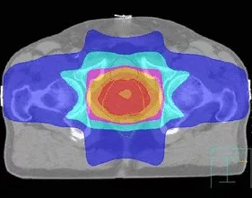 利用多葉光柵或適形擋鉛技術(shù),將照射野的形狀由普通放療的方形或矩形調(diào)整為腫瘤的形狀,從而使照射的高劑量區(qū)在人體內(nèi)的三維立體空間上與腫瘤的實(shí)際形狀相一致。三維適形放療提高了腫瘤的照射劑量,保護(hù)了腫瘤周圍的正常組織,降低了放射性并發(fā)癥,提高腫瘤的控制率。